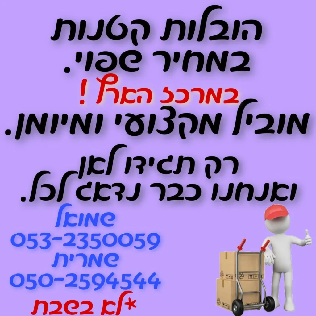 אנו מעסיקים צוות מיומן ומנוסה הכולל סבלים מקצועיים, מומחים לפירוק והרכבת רהיטים, ושמים דגש על אריזה נכונה והובלה בטוחה של כל פריט – מרהיטים שבירים ועד מוצרי חשמל כבדים.